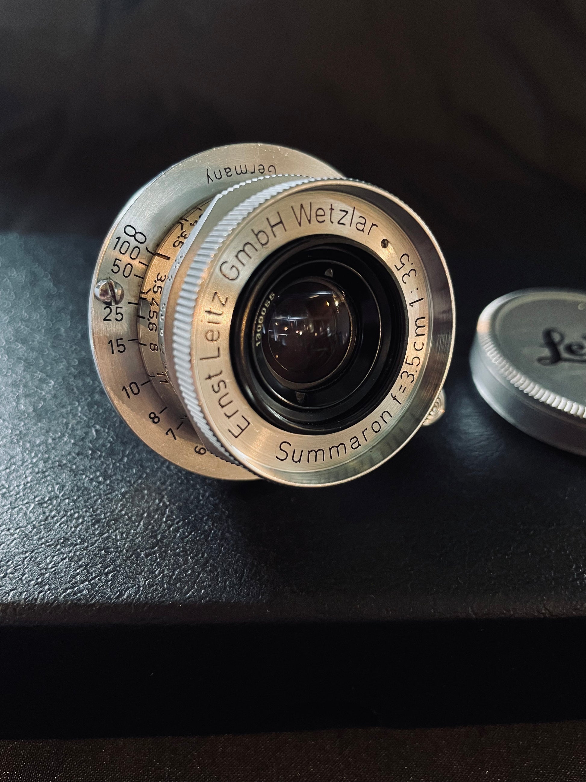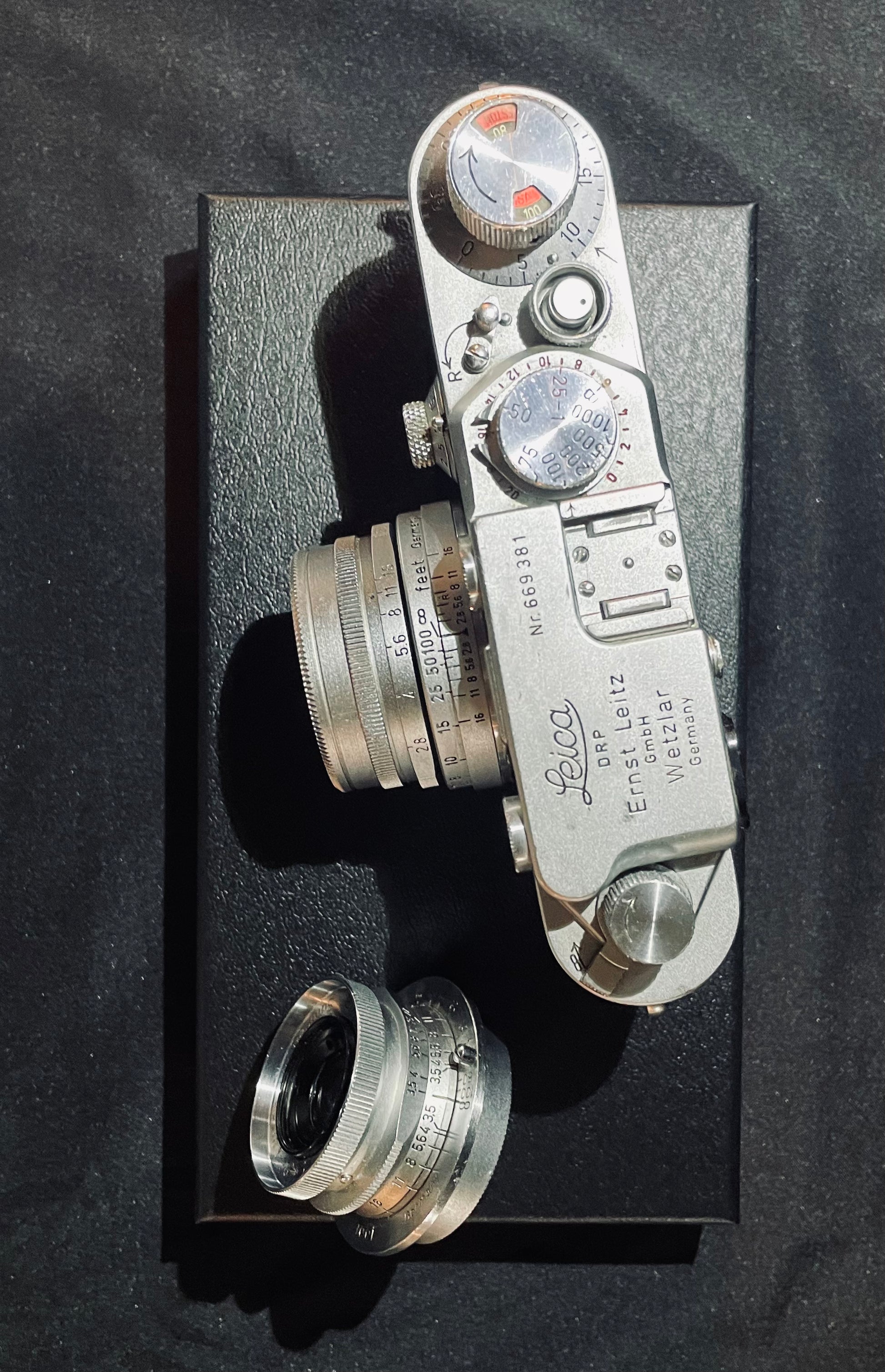 This iconic 1953 Leica iiiF Red Dial Rangefinder includes a rare 1956 Summaron 35mm f/3.5 lens, and a 1955 Elmar 50mm f/2.8 lens.